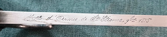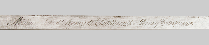 Les baïonnettes fabriquées en grande série en France entre 1875 et 1886 par les trois manufactures d’armes militaires portent sur le dos le nom du fabricant (Châttelerault, Saint-Etienne, Tulle), ainsi que le mois et l’année de fabrication.
