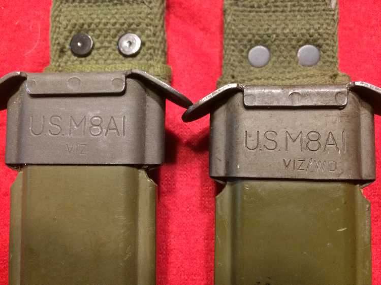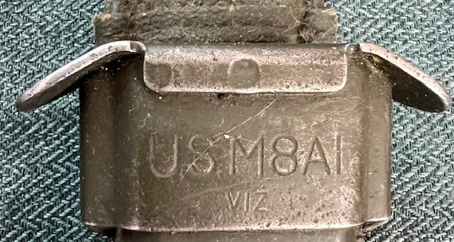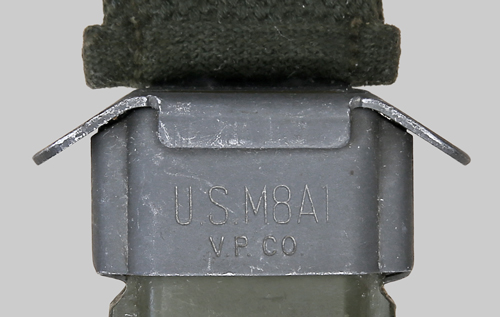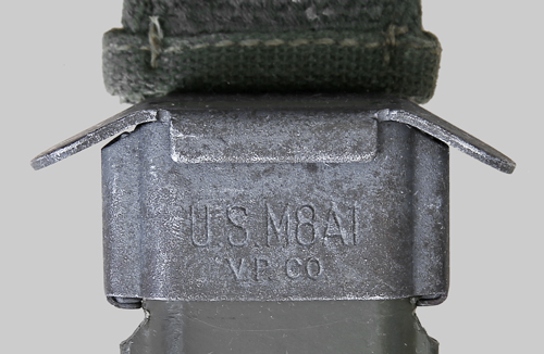 Viz Manufacturing Co., successeur immédiat de Victory Plastics Co., produisait des fourreaux M8A1 entre 1962 et 1963 (contrat DA-11-199-ORD-728). En 2020, des emballages cellophane thermoscellés d’origine contenant des fourreaux VIZ M8A1, étiquetés avec une date de contrat d’août 1962 et une date d’emballage de mars 1963, ont été découverts par le collectionneur et chercheur Boyd M. Jenkinson, Jr., prouvant ainsi de manière concluante que Viz Manufacturing Co. produisait des fourreaux M8A1 bien plus tôt qu’on ne le pensait auparavant.
