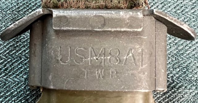 La marque du fabricant utilisée sur les fourreaux d’après-guerre de Victory Plastics était « VP Co. », au lieu de « BM Co. ». La fusion de 1955, créant Beckwith-Arden Inc., mit fin à l’existence de Beckwith Manufacturing Co., ce qui nécessita la suppression du marquage « BM Co. », un fait qui aurait été connu en interne dès 1954, lors de la signature du contrat documenté relatif aux fourreaux M8A1, même s’il n’était pas encore public. Il est moins certain que cela ait été le cas en septembre 1952, ce qui laisse planer un doute quant à l’inclusion des fourreaux M8A1 dans le premier contrat (et, si oui, quant à leur marquage).