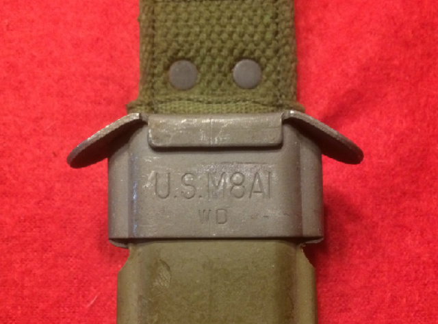 Le symbole du fabricant utilisé par Wilson-Duggar Co. était WD. Cependant, certains fourreaux de M8A1 Wilson-Duggar Co. (voire tous) étaient apparemment assemblés à partir de sous-ensembles fournis par des fournisseurs externes (gorges en acier et corps de fourreau en plastique). Il s’agissait notamment de sous-ensembles restants de Victory Plastics Co. (dont l’usine a fermé en 1964) et de sous-ensembles fournis par Viz Manufacturing Co.