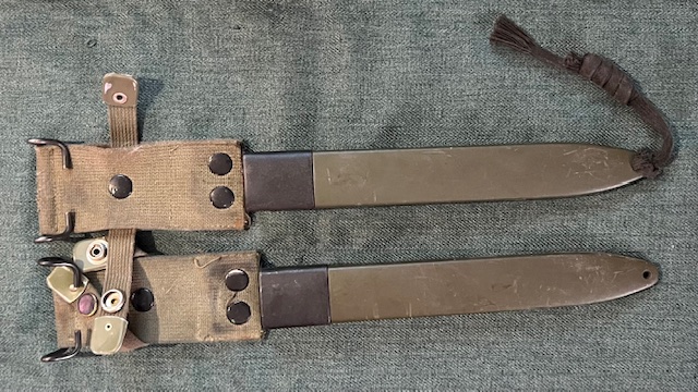 Ces baïonnettes-couteau dont la lame est forgée d’une seule pièce, peuvent être de fabrication allemande ou danoise.