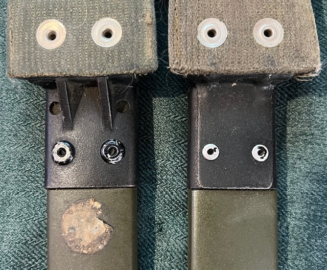 Le porte-fourreau utilisé avec ce modèle est de type P-1937, en toile de couleur brune, à double boucle et passant fixe.