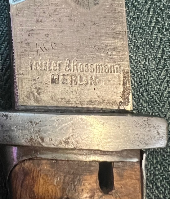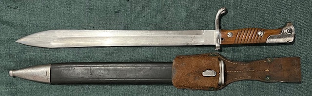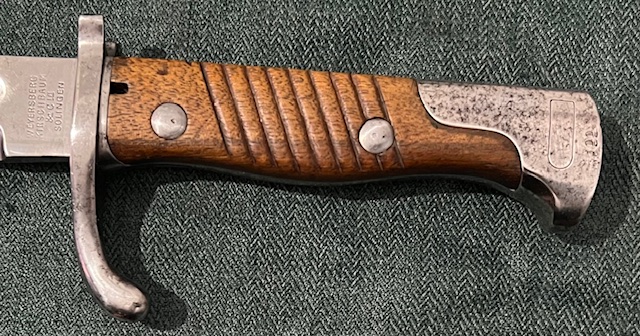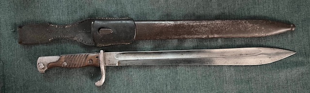 Cette baïonnette entièrement bleuie a peut être été réutilisée par la luftwaffe pour le personnel au sol ou la police à partir de 1938, tout ceci n’est qu’une supposition.