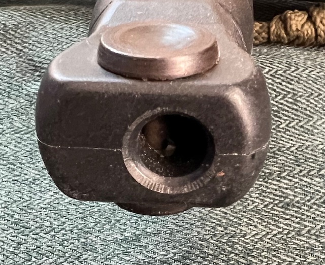 Pour l’utiliser comme baïonnette, il suffit d’ôter le capuchon rond amovible qui recouvre le trou de montage situé à l’intérieur du pommeau.