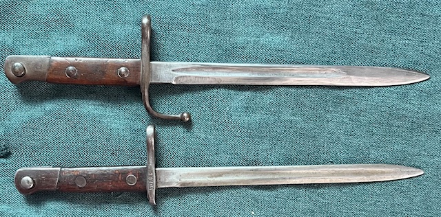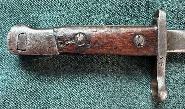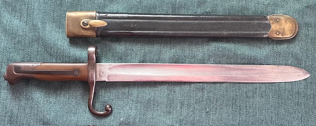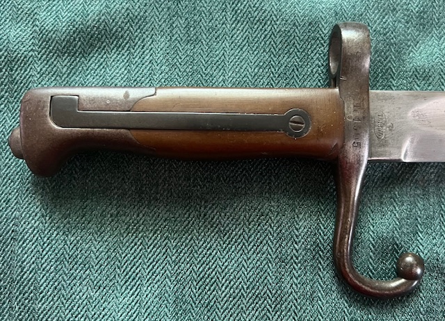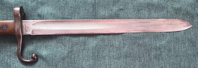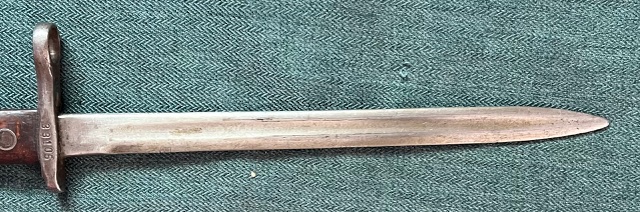 La lame d’origine indéterminée est légèrement moins épaisse que celle utilisée avec le M-1913. Lors du raccourcissement, son profil a dû être retravaillé et aminci progressivement à l’extrémité au niveau de la gouttière, ce qui la rend très fragile à la torsion.