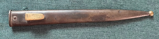 Le fourreau est spécifique à la lame de ce modèle, il est muni d’une cuvette maintenue au corps par un rivet et un bouton de suspension allongé de style allemand. Il a la particularité d’avoir le bouton de suspension ainsi que le bouton de bouterolle à l’extrémité en laiton. Certaines baïonnettes M-1913 peuvent être munies de fourreaux en cuir raccourcis.