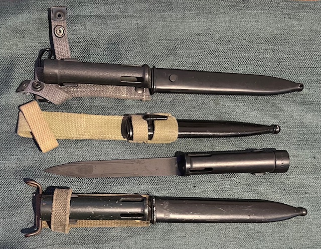Ces porte-fourreaux en toile Web, à passant amovible ont été utilisés à partir des années 50 pour les fourreaux de baïonnettes SAFN 49, FAL de type A, C, ou P-1907, leur conception est semblable au modèle Britannique P-1937. Les variantes de couleur gris-clair étaient réservées aux militaires de l’armée de l’air.