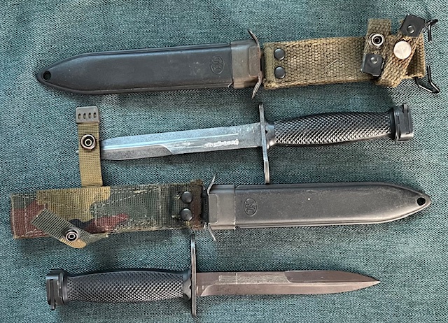 Cette baïonnette estampillée FN, identique au modèle M7 de la firme allemande AES, a bien été utilisée, elle possède beaucoup plus d’attrait que le modèle AES.