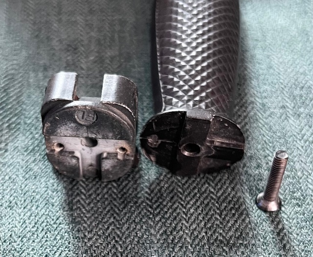 La poignée monobloc en plastique noir quadrillé moulée recouvre entièrement la soie, l’arrière qui intègre un écrou sert de point de fixation au pommeau maintenu par une vis à tête cruciforme. La croisière est dépourvue de tout marquage, du fait de sa constitution simplifiée, elle a souvent tendance à prendre du jeu (terme de mécanicien) avec le temps.