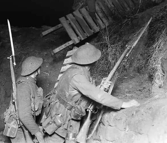 - Lors des combats rapprochés, dans les tranchées, après le bloquage de la ligne de front, peu après le début des hostilités.