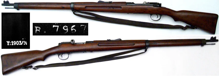 Armement : Le fusil Mannlicher-Schönauer fut l’arme légère principale de l’armée grecque pendant certaines des années les plus actives de son histoire moderne. La Grèce fut presque continuellement en état de guerre entre 1904-1922 et 1940-1948. Il semble que les Grecs aient passé quatre contrats principaux. Le Y1903 original, fabriqué par Steyr (« Y » signifie « modèle » en grec), commença à être livré en 1906-1907, pour un total d’environ 130 000 fusils longs et carabines. Ce fut l’arme principale pendant les guerres balkaniques victorieuses de 1912-1913. Un deuxième lot de 50 000 fusils fut commandé à Steyr en 1914, le modèle Y1903/14, présentant des améliorations mineures, notamment l’ajout d’un garde-main complet. Ces fusils furent utilisés pour la première fois pendant la Première Guerre mondiale. Lorsque la guerre éclata, les Autrichiens cessèrent leurs livraisons, la Grèce choisissant de rester neutre pendant les trois premières années. A cette époque, la Grèce possédait entre 166 000 et 190 069 fusils et carabines Mannlicher-Schönauer.