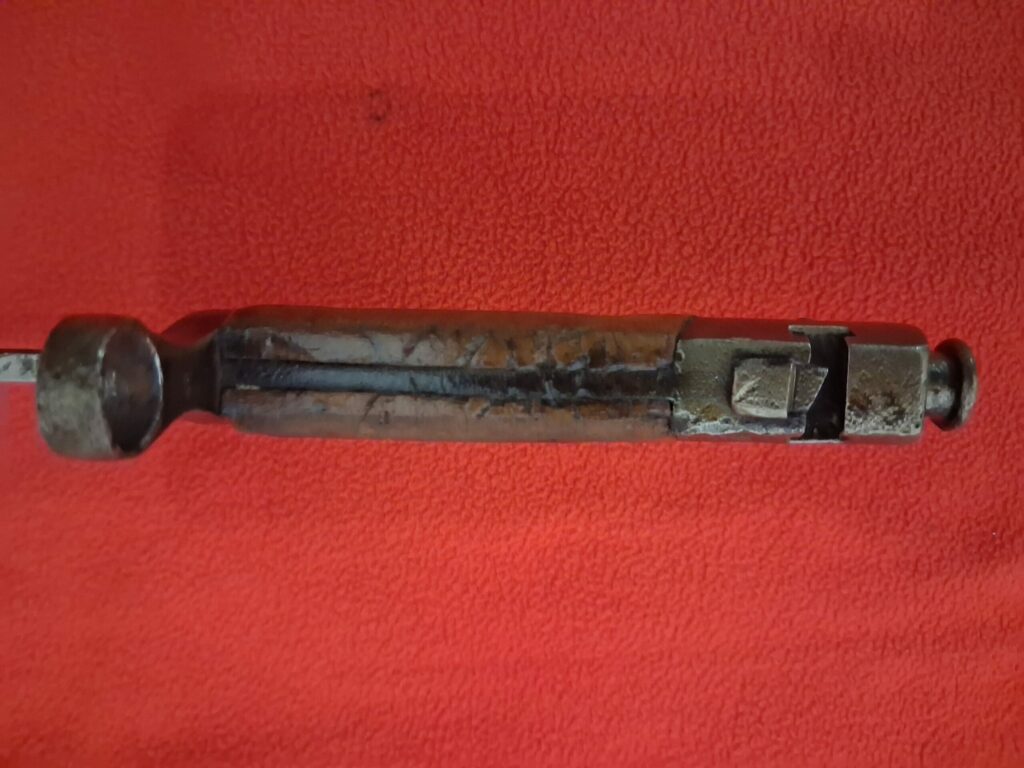 Merci à Marc pour certaines photos car je ne possède pas ce modèle. Il est très difficile de trouver ce modèle en excellent état, car l’acier qui constitue la structure de la baïonnette a tendance à se corroder suivant son conditionnement ultérieur.